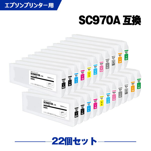 月末SALE★20%OFFクーポン SC9MB70A SC9BK70A SC9C70A SC9VM70A SC9Y70A SC9LC70A SC9VLM70A SC9GY70A SC9LGY70A SC9OR70A SC9GR70A 顔料 大容量 11色セット×2 エプソン 互換 インクカートリッジ (SC970A SC-P7050G SC-P9050G SC P7050G SC P9050G)