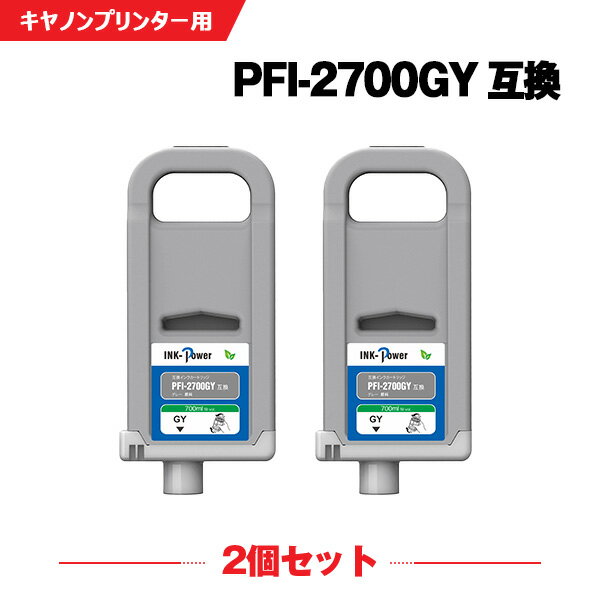 月末SALE★20%OFFクーポン PFI-2700GY グレー 顔料 (PFI-2100 PFI2300の大容量) お得な2個セット キヤノン 互換 インクタンク (PFI-2700 PFI2100 PFI2300 PFI2700 GP-2000 GP-4000 GP2000 GP4000)