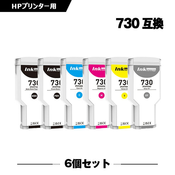月末SALE★20%OFFクーポン HP730マットブラック(P2V71A 顔料 HP730フォトブラック(P2V73A HP730シアン(P2V68A HP730マゼンタ(P2V69A HP730イエロー(P2V70A HP730グレー(P2V72A 大容量 6色セット ヒューレット・パッカード 互換インク インクカートリッジ HP730 HP 730