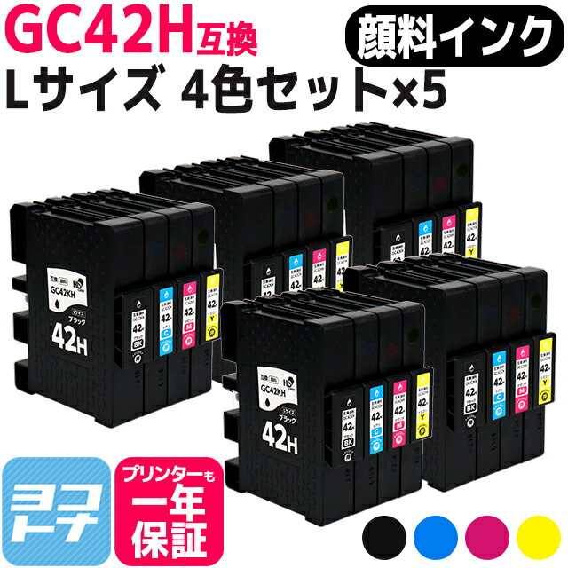 ★月末月初10%OFFクーポン★Lサイズ 顔料 SGカートリッジ GC42H RICOH リコー 4色×5セット互換インクカートリッジ 内容:GC42KH GC42CH GC42MH GC42YH 対応機種:RICOH SG 5200 RICOH SG 5200(フロント手差しモデル) 宅配便で送料無料【互換インク】