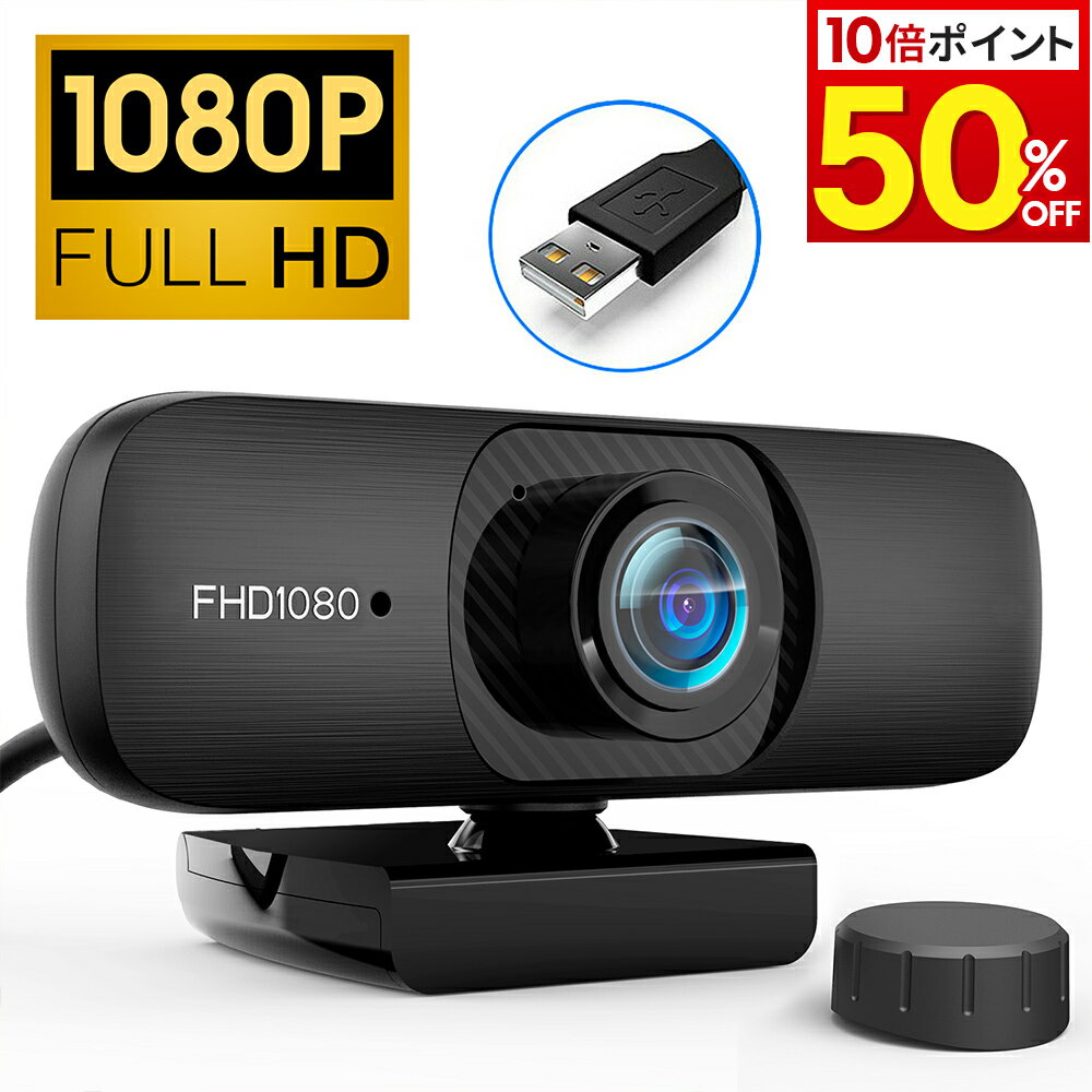 【レビュー特典付き!】Webカメラ マイク内蔵 フルHD ウェブカメラ 1080P 高画質 超広角 360°回転 PCカメラ 外付け USBカメラ カバー付 USB接続 ビデオ会議