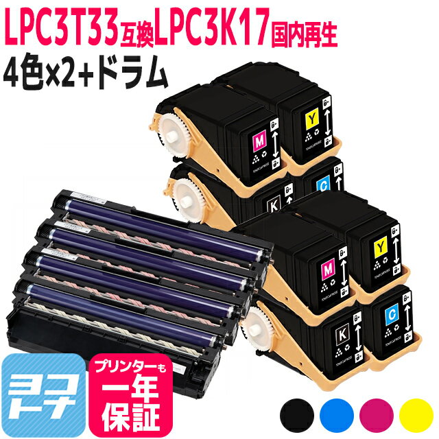 ★月末月初10%OFFクーポン★【即納】 感光体ユニット LPC3T33 エプソン 4色×2セット+国内再生ドラムセット 互換トナーカートリッジ 内容:LPC3T33K LPC3T33C LPC3T33M LPC3T33Y LPC3K17K LPC3K17 対応機種:LP-S7160 LP-S7160Z リサイクルドラム