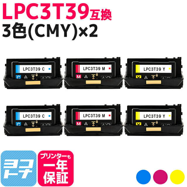 ★月末月初10%OFFクーポン★【即納/回収不要/純正同等のトナーパウダー採用 】LPC3T39 エプソン 重合パウダー(ケミカルパウダー)採用 3色(CMY)×2セット互換トナーカートリッジ 内容:LPC3T39C LPC3T39M LPC3T39Y 対応機種:LP-S8180 LP-S8180PS ETカートリッジ Lサイズ