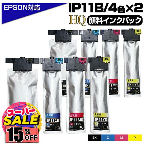 【楽天スーパーSALE☆15%OFF】IP11B 4色セット×2セット【全色顔料】エプソン互換インクパック 大容量版 ip11 互換インクパック IP11KB IP11CB IP11MB IP11YB エプソンプリンター対応 4色セット×2 HQ Ver.ハイクオリティ 対応プリンター:PX-M887F PX-S887