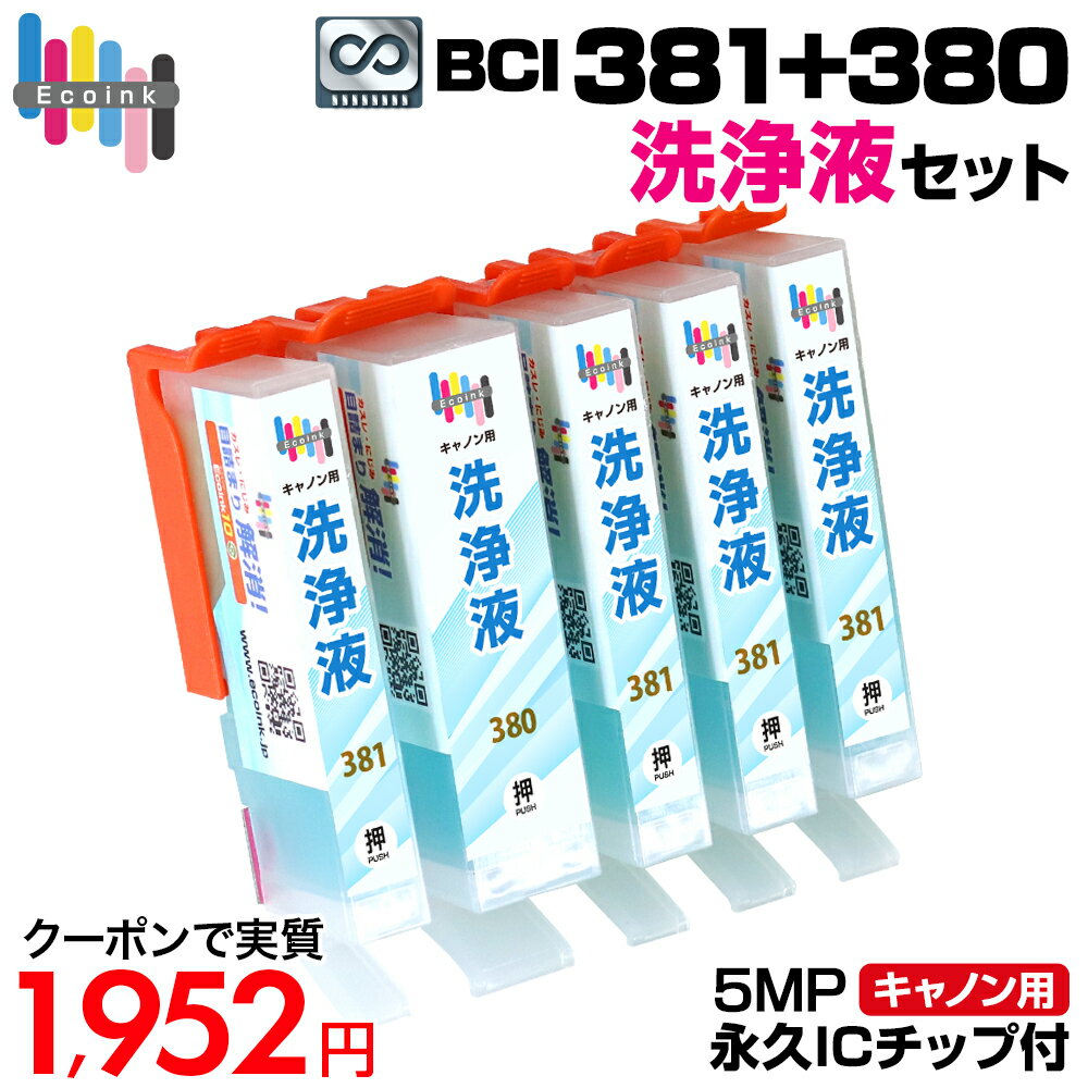 【実質1,952円★20%OFFクーポンあり!】BCI-381+380 洗浄液 5色セット【永久ICチップ付き】クリーニングカートリッジ 目詰まり解消 クリーニング液 キャノン Canon プリンター洗浄液 プリンター目詰まり洗浄カートリッジ かすれ 印字不良 BCI 381 380 PIXUS TS7430