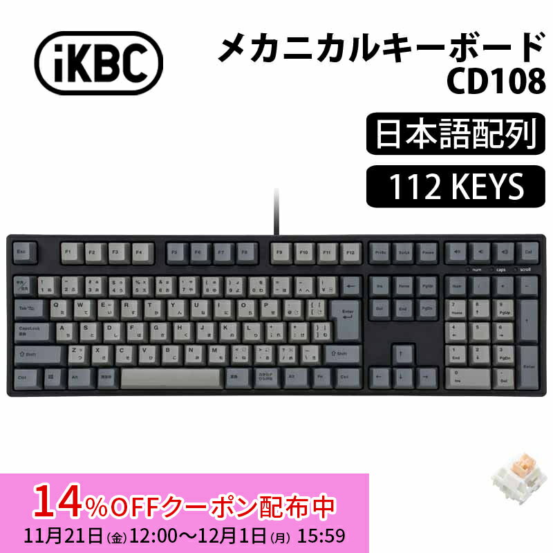 [14%OFFクーポン 12/1夕方まで]iKBC CD108シリーズ JIS配列 112キー キーボード フルサイズ メカニカルキーボード Outemu サイレント IK-CD108-O/CY-BK アイケービーシー 日本語配列 タクタイル 静音 CD108 PBT キーキャップ ホットスワップ win mac