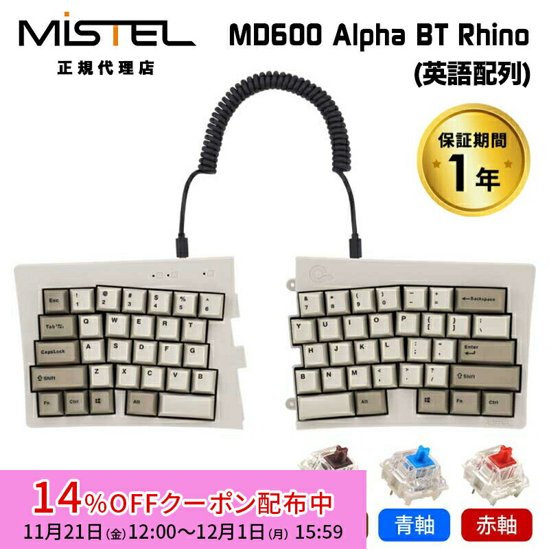 [14%OFFクーポン 12/1夕方まで]Mistel Barocco MD600 Alpha Rhino 無線 キーボード 英語 US 配列 茶軸 青軸 赤軸 ML-MD600ABT-Uシリーズ ミステル 左右分割型 分割 分離 スプリット メカニカル 角度調整 64キー win mac 有線 ワイヤレス メカニカルキーボード