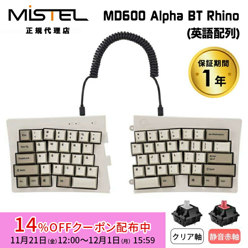 [14%OFFクーポン 12/1夕方まで]Mistel Barocco MD600 Alpha Rhino 無線 キーボード 英語 US 配列 静音赤軸 クリア軸 ML-MD600ABT-Uシリーズ ミステル 左右分割型 分割 分離 スプリット メカニカル 角度調整 64キー win mac 有線 ワイヤレス