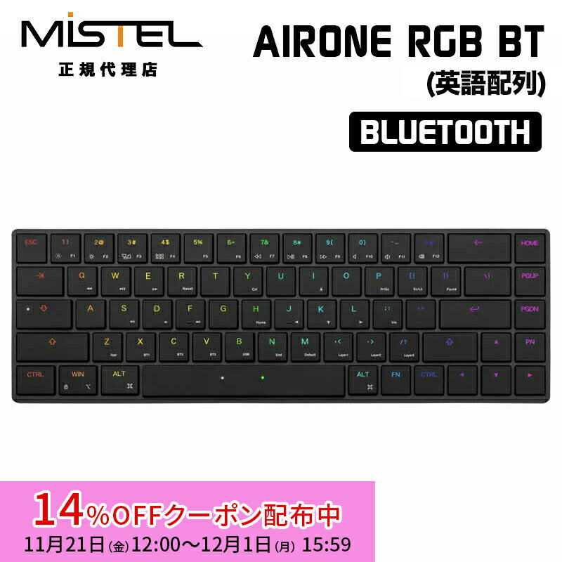 [14%OFFクーポン 12/1夕方まで]Mistel Barocco Mistel AIRONE RGB BT Cherry ULP キーボード 無線 英語 US 配列 クリッキー タクタイル ML-MD68BT-Uシリーズ ミステル エアワン 薄型 スリム 軽量 メカニカル 有線 Cheery MX ULP 68キー win mac 薄い ワイヤレス