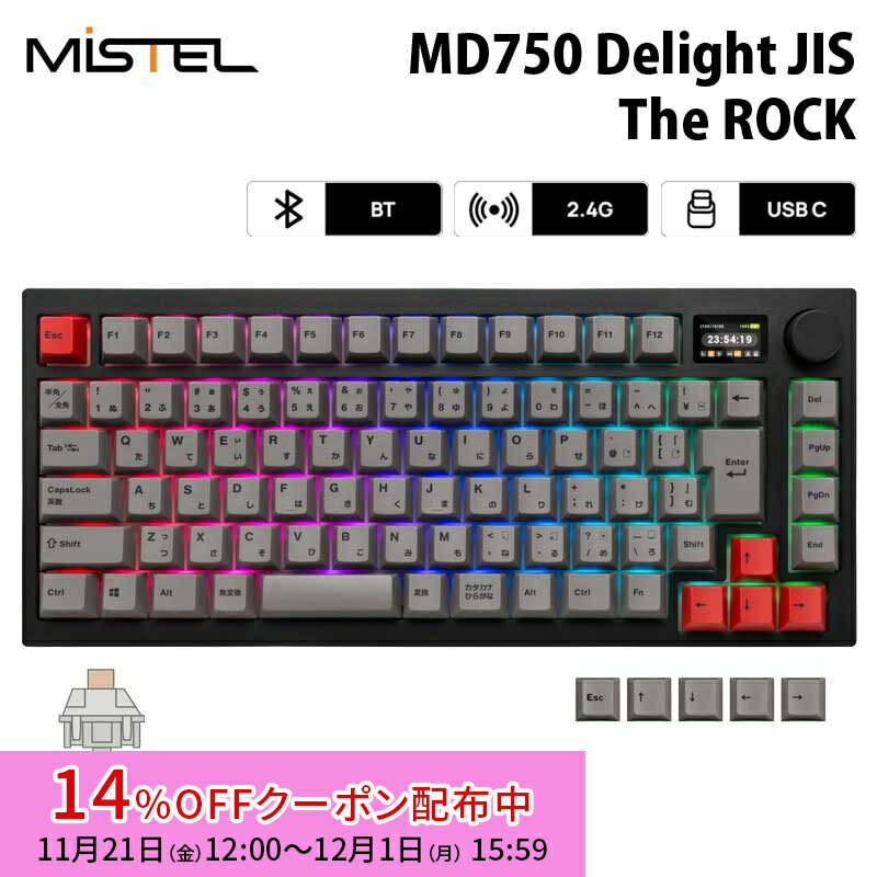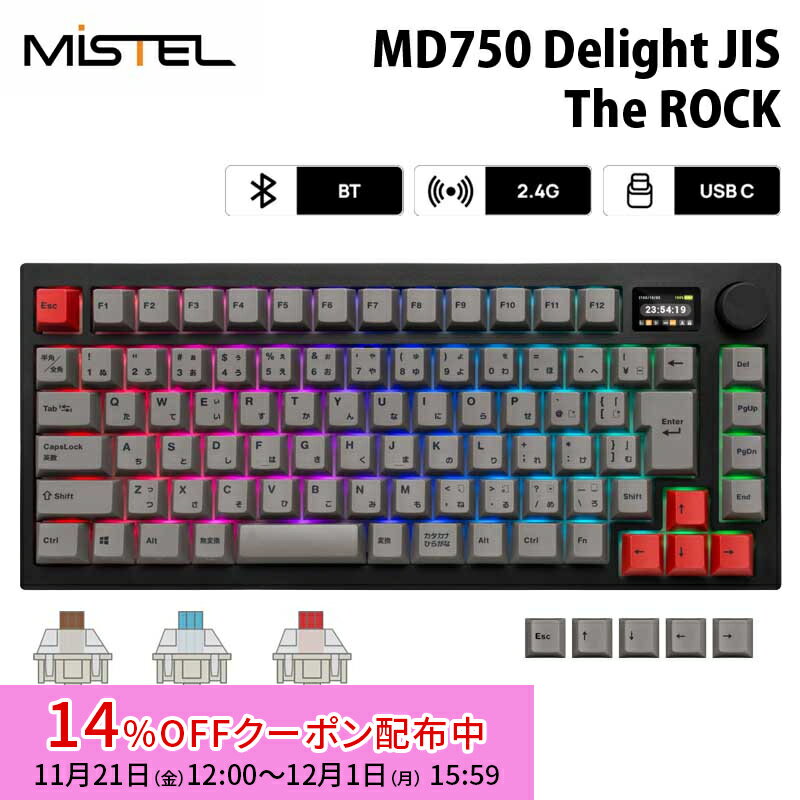 [14%OFFクーポン 12/1夕方まで]Mistel MD750 Delight JIS 無線 / 有線 キーボード 75% 日本語配列 茶軸 青軸 赤軸 ML-MD750D-Jシリーズ ミステル メカニカル 角度調整 Gateron 86キー win mac 有線 無線 bluetooth 2.4GHz Barocco Mistel