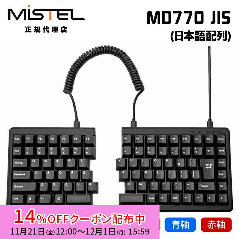 [14%OFFクーポン 12/1夕方まで]Mistel MD770 JIS 有線 キーボード 日本語 JIS配列 静音赤軸 ML-MD770-J-SR/BK ミステル 左右分割型 分割 分離 スプリット メカニカル 角度調整 Cherry MX 88キー win mac 有線 分割キーボード テレワーク