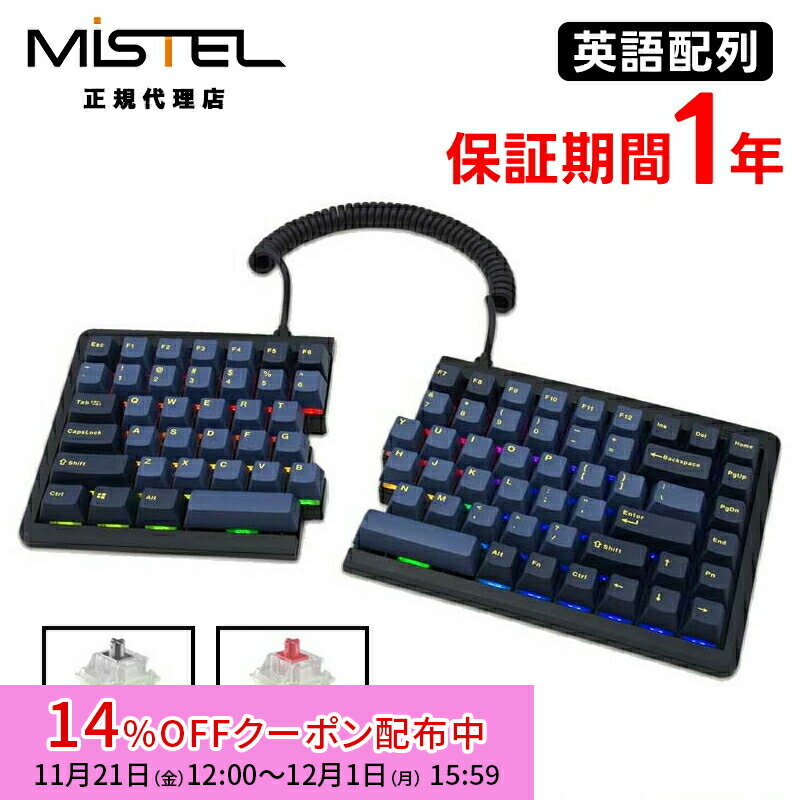 [14%OFFクーポン 12/1夕方まで]Mistel MD770 JIS 有線 キーボード 日本語 JIS配列 茶軸 青軸 赤軸 ML-MD770-Jシリーズ ミステル 左右分割型 分割 分離 スプリット メカニカル 角度調整 Gateron 88キー win mac 有線 分割キーボード テレワーク