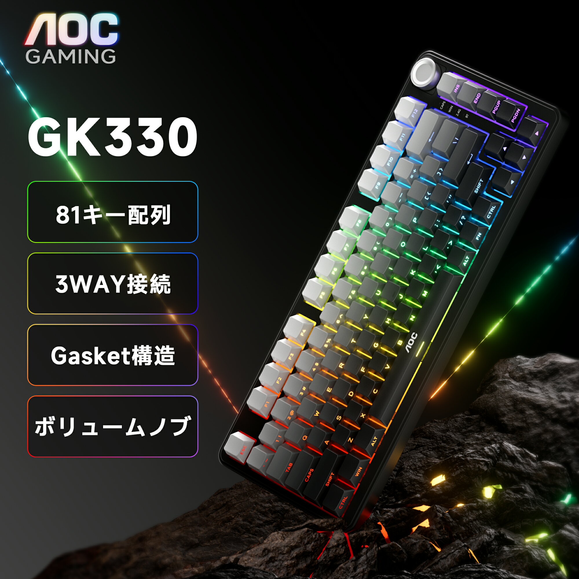 【新発売★本日30%OFFクーポンで7,686円!】AOC メカニカルキーボード 無線&有線3WAY接続 ゲーミングキーボード|81キー 75%英語配列|1K リターン|ボリュームノブ|Gasket RGBバックライト|PBTキーキャップ・ホットスワップ|4000mAhバッテリー GK330 1+1年保証