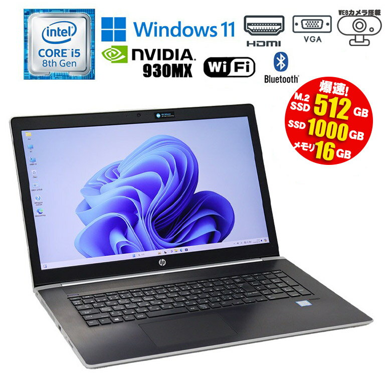 スーパーセール 20%OFF 当日発送 限定1台【中古】ノートパソコン HP ProBook 470 G5 17.3型 Windows11 Core i5 8250U 1.60GHz メモリ16GB M.2SSD512GB HDD1TB ドライブレス GeForce 930MX 無線LAN Bluetooth WEBカメラ 90日保証 初期設定済 中古 パソコン