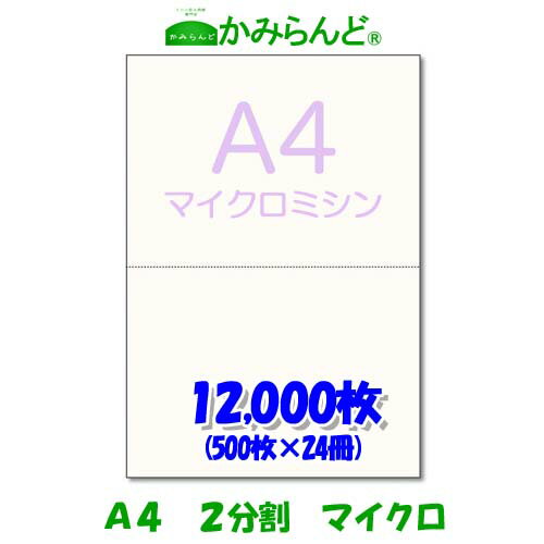 【送料無料】【A4】2分割 4穴 マイクロミシン目入り用紙 12,000枚 高級上質コピー用紙 各種帳票 伝票用に ミシン目用紙 2面カット紙 ミシン入用紙