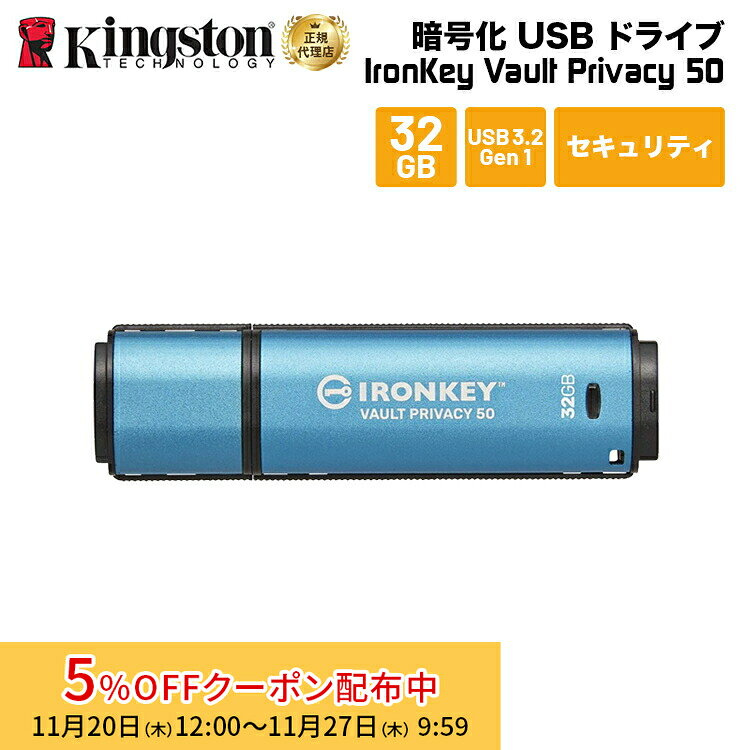 [5%OFFクーポン 27日朝まで]【メーカー取り寄せ】 キングストン IronKey Vault Privacy 50シリーズ 32GB USB3.2 Gen セキュリティモデル IKVP50/32GB kingston USBメモリ アイロンキー 暗号化 パスワード セキュリティ プライバシー 新生活 国内正規品 キャンセル不可