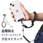 スマホストラップ 落下防止 セキュリティストラップ 防犯ストラップ スマホ用 ワイヤー入り 手首 コイルストラップ カラビナ付き ホルダー付き 携帯 防犯グッズ