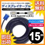ディスプレイケーブル VGAケーブル ブラック 15m D-Sub15ピンミニ ( オス ) - フェライトコア付き プロジェクター ディスプレイ