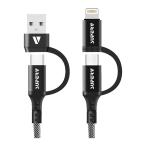 4in1 充電ケーブル マルチ 急速充電 PD65W対応 iPhone 17 17e Type-C USB-A 充電ケーブル USB Lightning 急速 ケーブル タイプc ライトニング スマホ データ転送