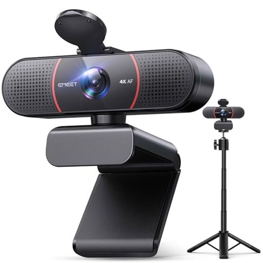 EMEETC9604Kwebカメラ三脚付きウェブカメラ800万画質UHDSonyセンサーPDAFオートーフォーカス内蔵マイクパソコン用カメラ3段階高さ調節自動光補正PCカメラプライバシーカバー