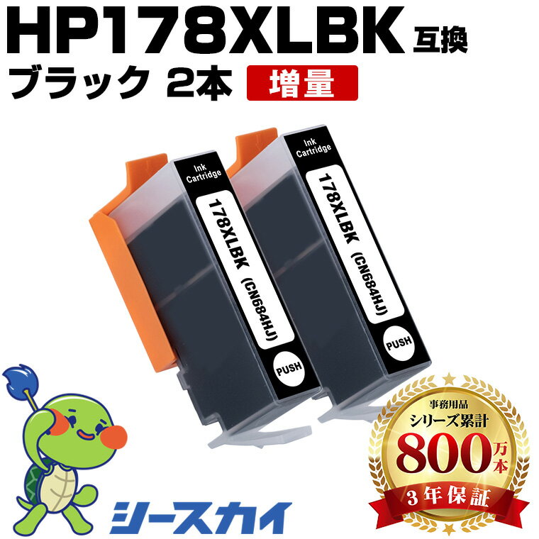 【全品ポイント20倍★10%OFF】 ヒューレット・パッカード用 HP178XL HP178XL黒(CN684HJ) 2個セット 残量表示機能付 互換インクカートリッジ 高品質 純正と同じ容量 3年保証付き 顔料 Photosmart 5520 DeskJet 3520 Photosmart 5510 Photosmart 5521