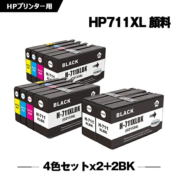【全品ポイント20倍★10%OFF】 HP711XLBK(CZ133A ブラック HP711XLC(CZ130A シアン HP711XLM(CZ131A マゼンタ HP711XLY(CZ132A イエロー 4色セット×2 + HP711XLBK(CZ133A×2 お得な10個セット ヒューレット・パッカード 互換 インク (HP711 HP711XL HP711BK HP711C