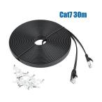 送料無料 LANケーブル 30M ブラック イーサネットケーブル カテゴリー7 ウルトラフラットケーブル 10Gbps/600MHz RJ45 SAC-048