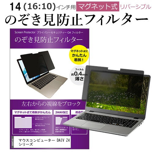 マウスコンピューター DAIV Z4 シリーズ [14インチ] 覗き見防止 のぞき見防止 フィルター マグネット 式 タイプ パソコン pc フィルター ブルーライトカット 左右からの覗き見を防止 メール便送料無料 jgs bgt 互換品