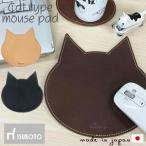 牛革マウスパッド ネコ型 猫 ヌメ革 本革 厚手 国産 3色 アニマル プレゼント 可愛い 高級感 経年変化 オフィス 在宅 ステッチ パソコン ステーショナリー