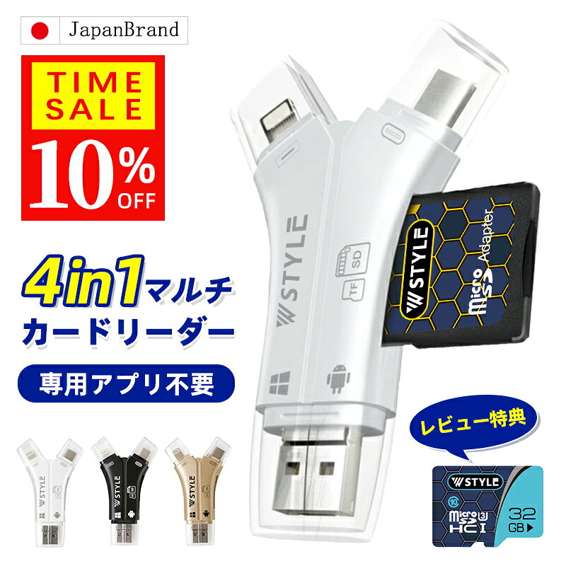 10%OFF 2696→2426円★1TB iPhone カードリーダー マルチカードリーダー 4in1 Phone16対応 SDカードリーダー スマホ Android Type-C USB2.0 usbメモリ バックアップ microSD SDカード データ移動 USB 連絡先 写真 動画 保存 携帯 容量不足解消 持ち運び データ保存 軽量