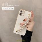 iPhoneケース スマホケース iPhoneカバー iPhoneケース フェイクパール ベルト付き 無地 縁取り 13 12 Pro ProMax