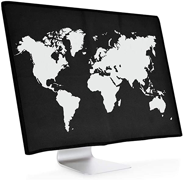 モニター防塵カバー 20-22'モニター PC カバー ディスプレイ 保護カバー - パソコン ホコリ 液晶カバー 世界地図デザイン 白色 黒色