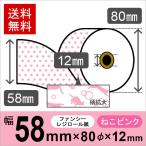 ねこ柄イラスト入りサーマルロール紙 サイズ 58mm×80mm×12mm ピンク 50巻 レジロール レシート用紙 感熱ロール