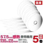券売機用ロール紙 紙幅57.5mm×300m×35mm 裏巻 白紙 (ミシン目なし) 紙厚 150μ 5巻入 食券機、発券機、券売機用感熱ロール紙