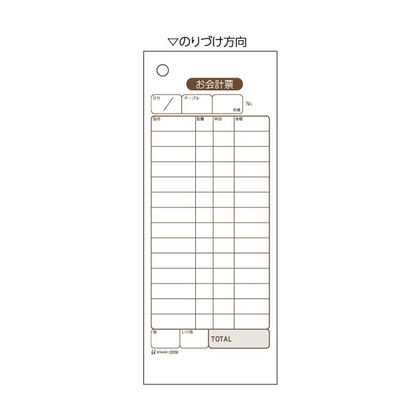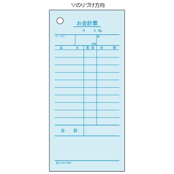 ヒサゴ お会計票・領収証付・NO.入 2036N