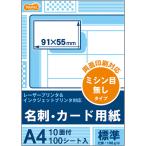 レーザー&インクジェットプリンタ対応 名刺カード用紙 標準 白 ミシン目が無いタイプ A4 10面 カードサイズ91×55mm (100シート)