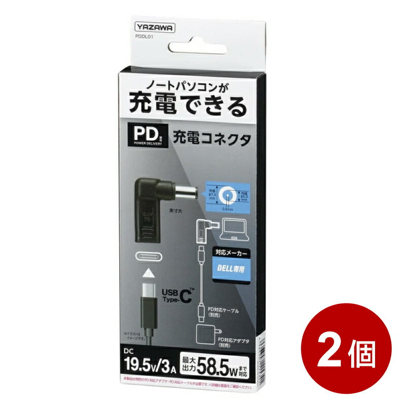 ヤザワ USB PD対応 充電コネクタ 2個セット DELL用 ノートパソコン用 USB充電 変換コネクタ Type C PDDL01-2P 【メール便送料無料】