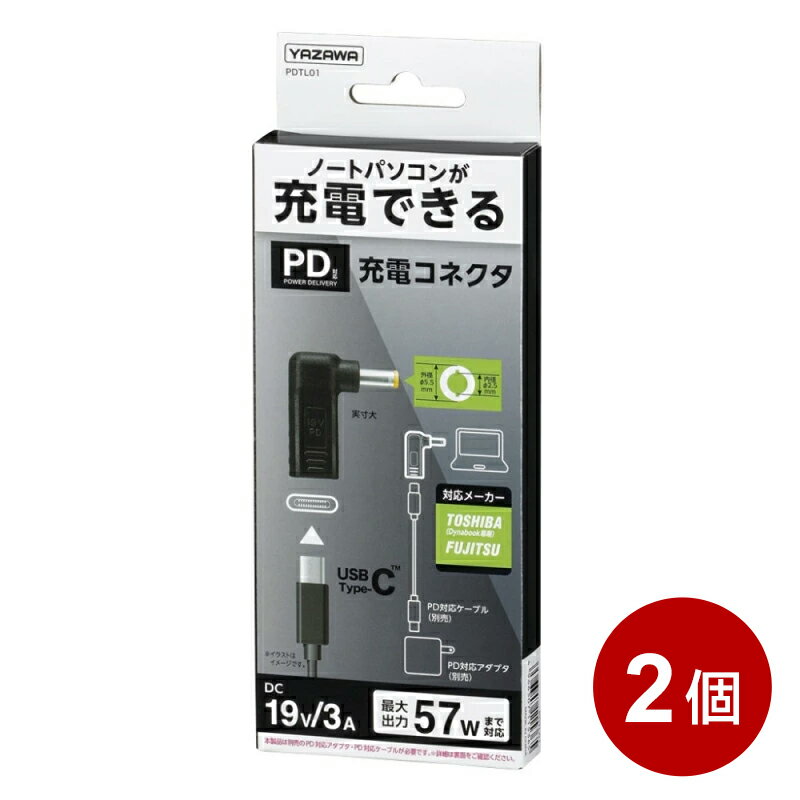 ヤザワ USB PD対応 充電コネクタ 2個セット 富士通・東芝(Dynabook)用 ノートパソコン用 USB充電 変換コネクタ Type C PDTL01-2P 【メール便送料無料】