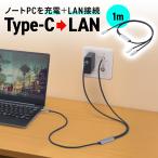 USB Type-C LAN変換ケーブル 1m カテゴリ6 RJ45 ギガビット PD100W C to LAN MACアドレスパススルー対応 への字ラッチ メッシュケーブル 500-LAN6KCPD01