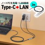 USB Type-C LAN変換ケーブル 2m カテゴリ6 RJ45 ギガビット PD100W C to LAN MACアドレスパススルー対応 への字ラッチ メッシュケーブル 500-LAN6KCPD02