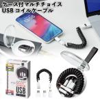 1個398円送料無料 ケース付マルチチョイスUSBコイルケーブル 200個セット USB ケーブル ケース付 スマホ モバイル 変換 景品 粗品 ギフト プチギフト 記念品