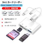 3in1 マルチカードリーダー SDカードリーダー iPhone iPad Android Type-C Lightning タブレット スマホ MicroSD USBメモリ カメラリーダー 写真 バックアップ