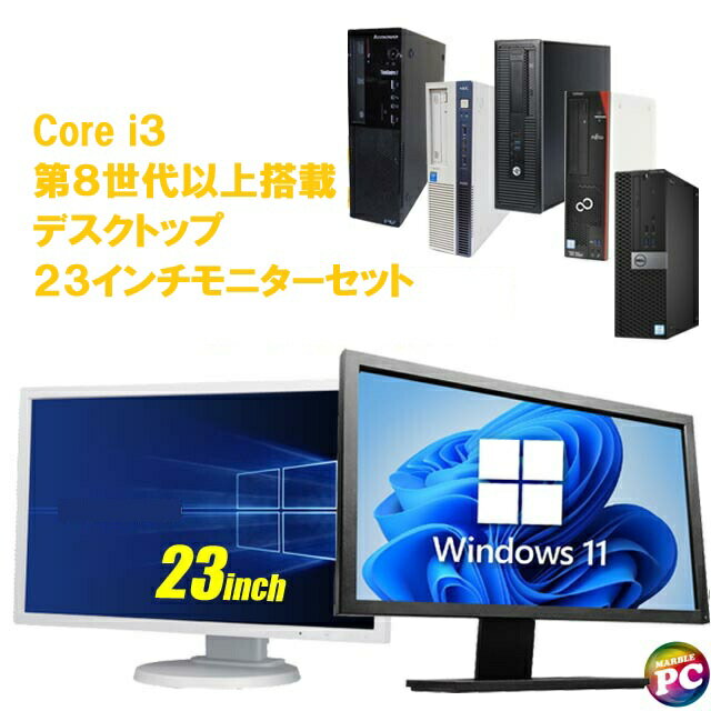 Windows11 有名メーカー Core i3搭載 中古デスクトップパソコン 23型液晶モニターセット HP/Dell/Lenovo/富士通/NEC等 WPS Office付き 【中古】 無線LAN子機 コアi3(第8世代以降) メモリ8GB SSD256GB DVDドライブ