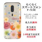 らくらくスマートフォン F-53E らふら 名入れ スマホケース ラインストーン スマホカバー 押し花風 フラワーアレンジ