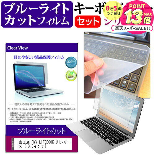 富士通 FMV LIFEBOOK PH シリーズ WP1/J3 [16インチ] キーボードカバー シリコン フリーカットタイプ と ブルーライトカット 液晶保護フィルム セット 互換品