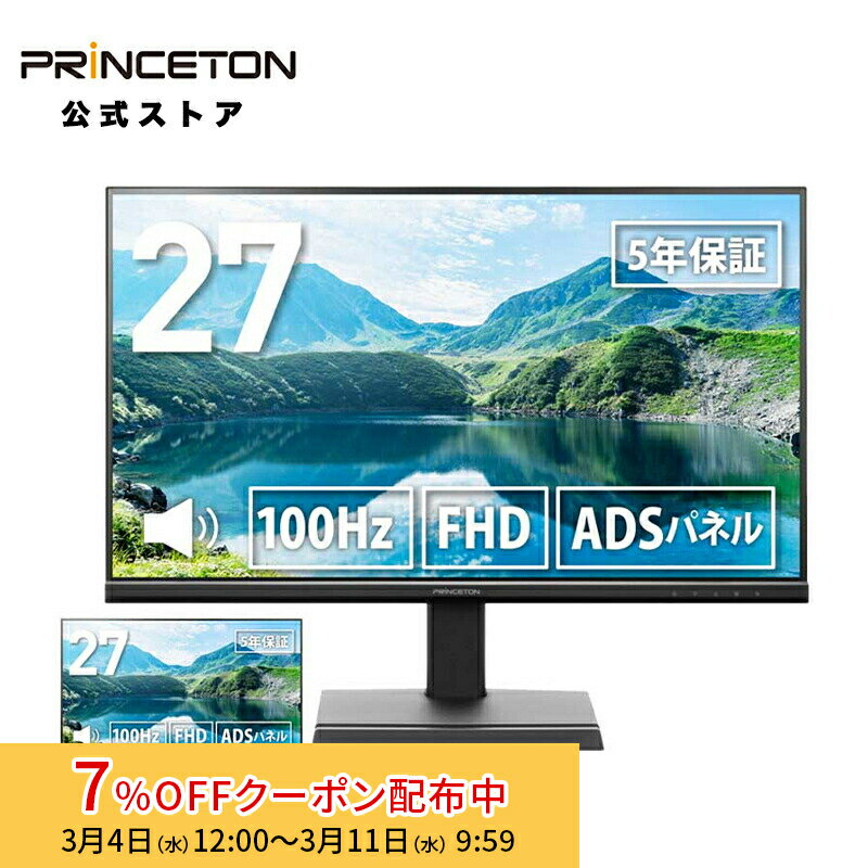[7%OFFクーポン 11日朝まで]プリンストン 27インチ ワイド 液晶ディスプレイ 全2色 100Hz フルHD ADSパネル PTF-B271W-BK PTF-B271W-WH 液晶モニター 27型 FHD HDMI モニター pcモニター