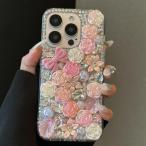 iPhoneケース iphone17 ダイヤモンド プラチナ iPhone16 15 14 Pro Max ケース レディース 高級感 バラ 花柄 フラワー デザイン
