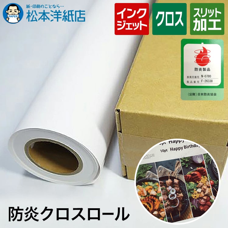 防炎クロスロール 200ミクロン, 防炎加工 クロス紙 布 印刷紙 印刷用紙 ロール紙 日本防炎協会認定品 インクジェット 懸垂幕 防炎クロス 燃えない布 難燃素材 難燃性 用紙