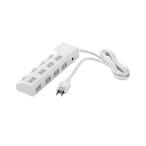 電源タップ 6個口 5m 3P 漏電ブレーカー付き 一括スイッチ 誤操作防止開閉式透明カバー付き マグネット 抜け止め アース端子付き 通電ランプ付き トラッキング火災予防絶縁キャップ付き ホワイト TAP-BR36LN-5