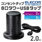 タワー型 電源タップ 8個口 タワー型タップ Type-C 2ポート USB-A 3ポート タイプc 充電器 typec ホコリ防止 ブラック 約2.0m┃ECT-2120BK エレコム 在庫処分